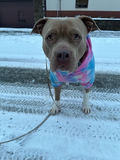 Mia liebt die Begegnung mit Kindern, genießt Streicheleinheiten und kleine gemeinsame Aufgaben.